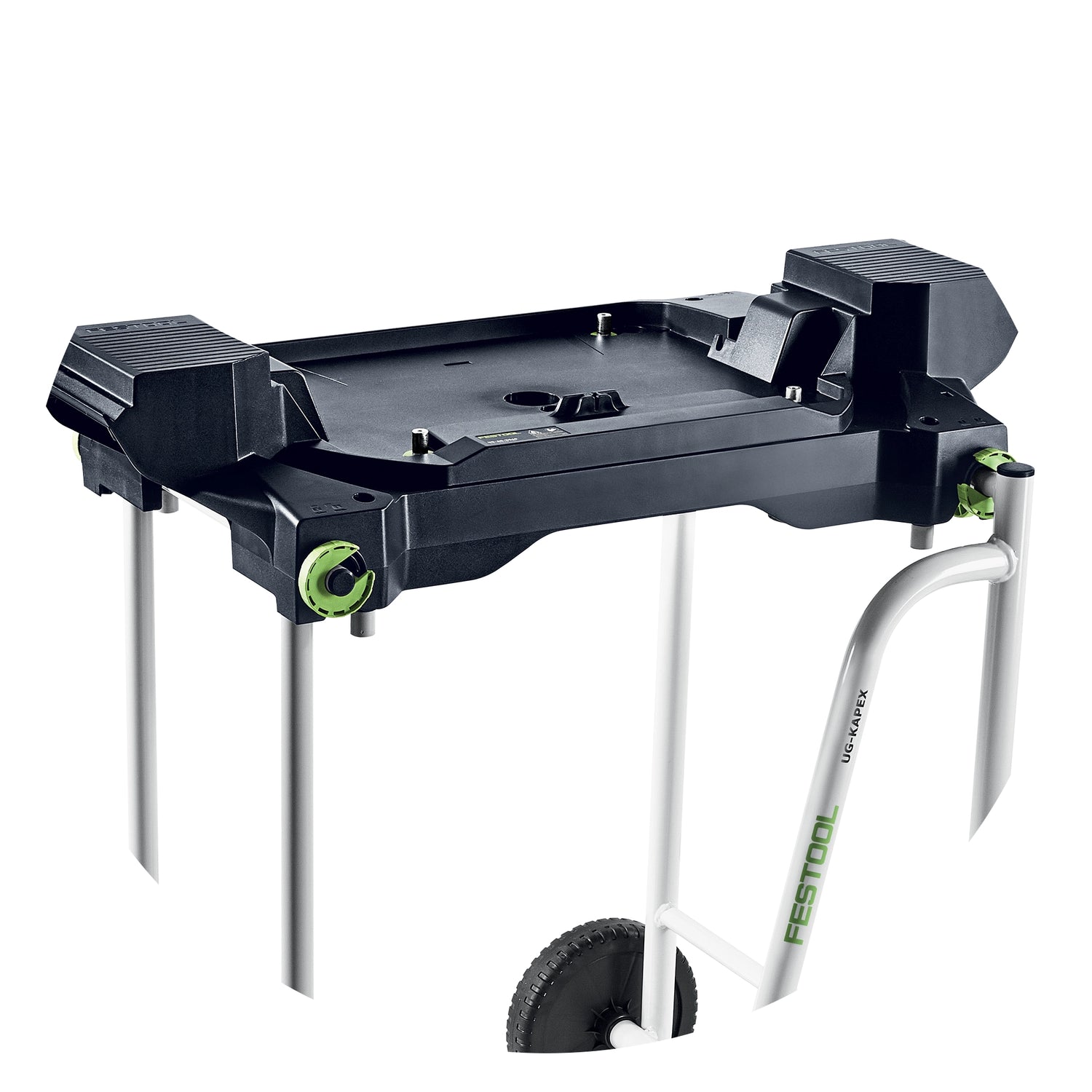 • Mobilitate superioară: Căruciorul pliabil și opritoarele permit transportarea cu ușurință a setului la șantier sau la șantier, cu ferăstrăul Kapex pliat în siguranță.