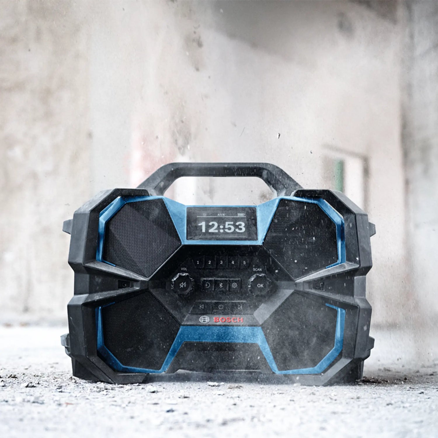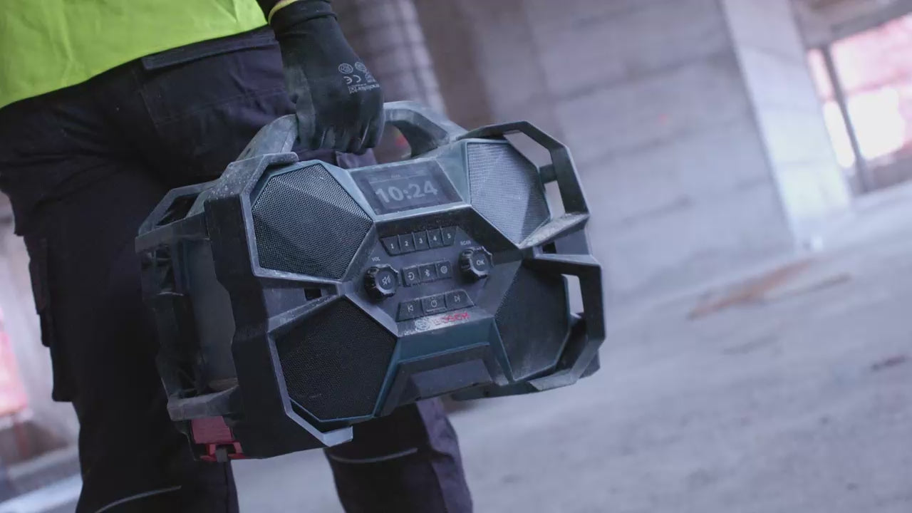 It is used to listen to music and news on the construction site or in the workshop via DAB+ and FM radio or Bluetooth and AUX connection, improving operating comfort and daily productivity with quality listening.