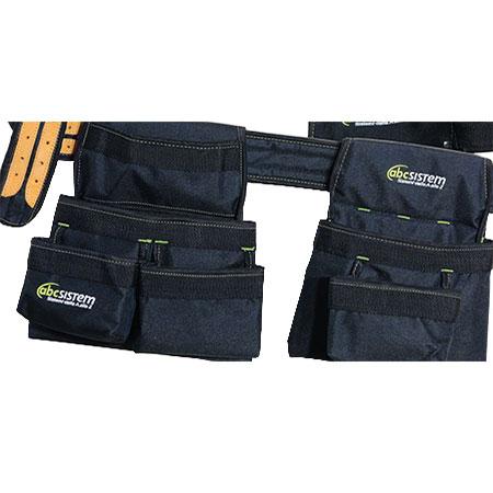 Double Fabric Belt Abc , comfortable and functional! Double Fabric Belt Abc , ideal for positioning with maximum freedom of action, also to have within reach: screws, plugs, tape measure. General characteristics: