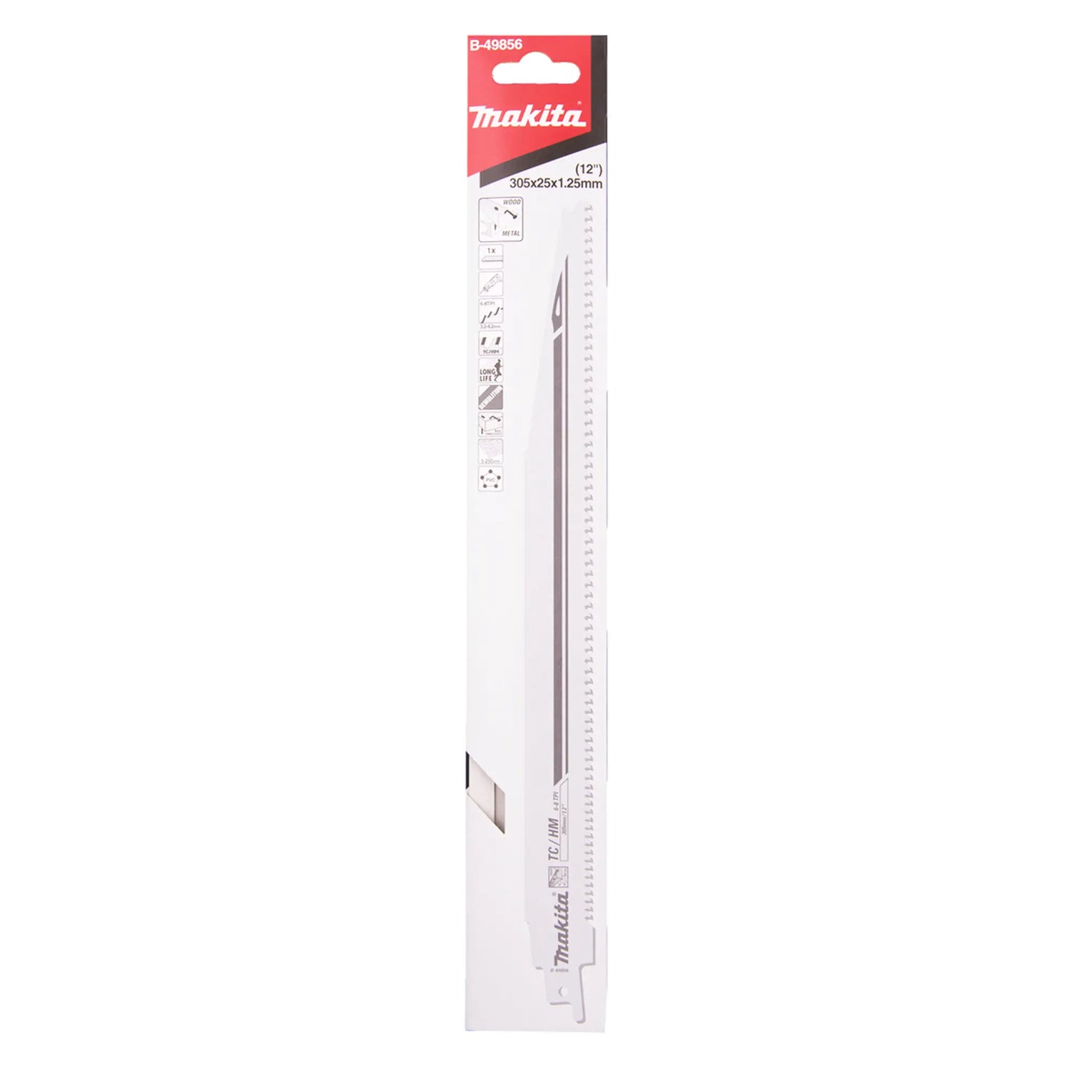 There Lama Makita B‑49856 305 mm is designed to ensure high performance in heavy cutting operations, on difficult materials such as wood with nails, metal, reinforced plastic and composite panels.