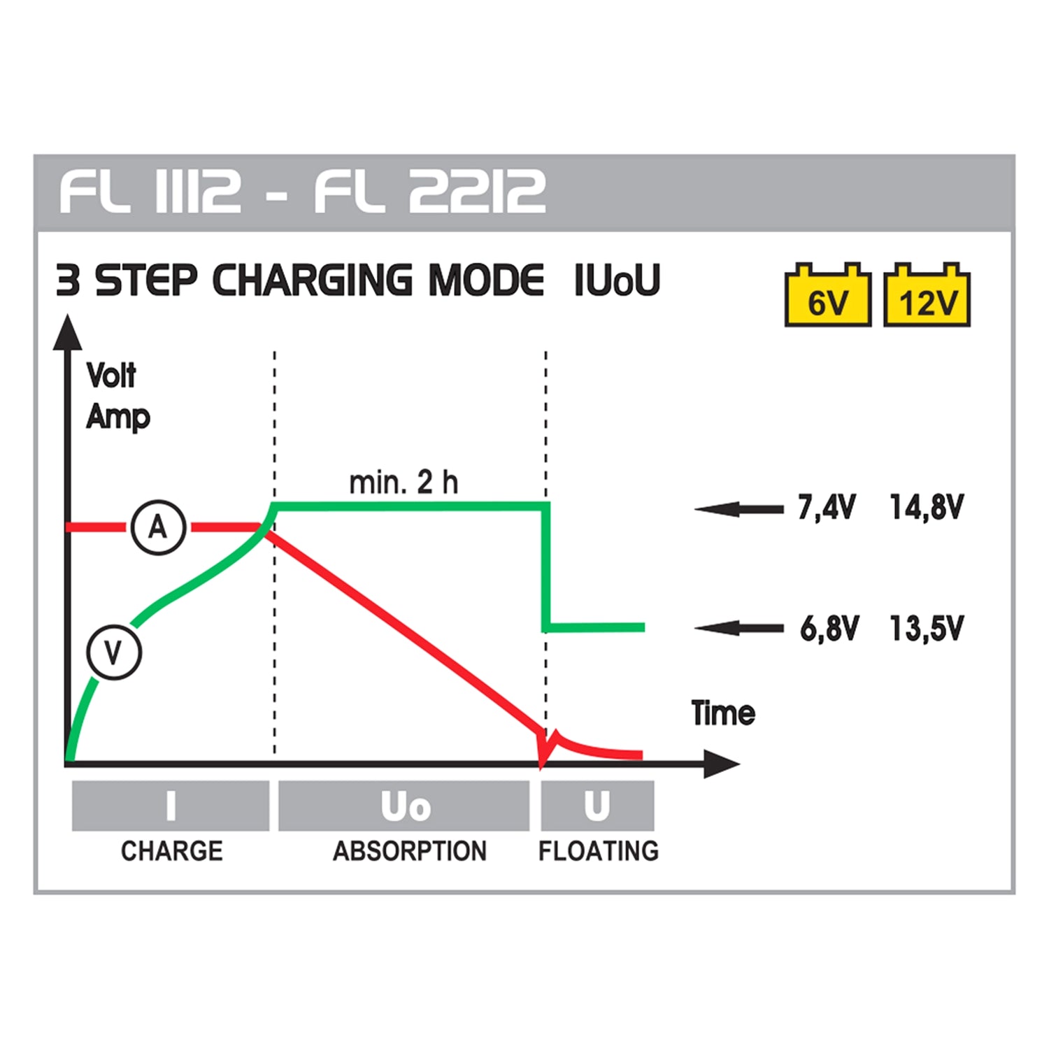 Incarcator baterie invertor Deca FL 2212 cu control electronic al curentului de încărcare și întreținere a încărcăturii „Floating”. Potrivit pentru încărcarea bateriilor plumb-acid: UMED cu si fara intretinere, AGM, AGM Power, GEL, Start & Stop, Ca/Ca.