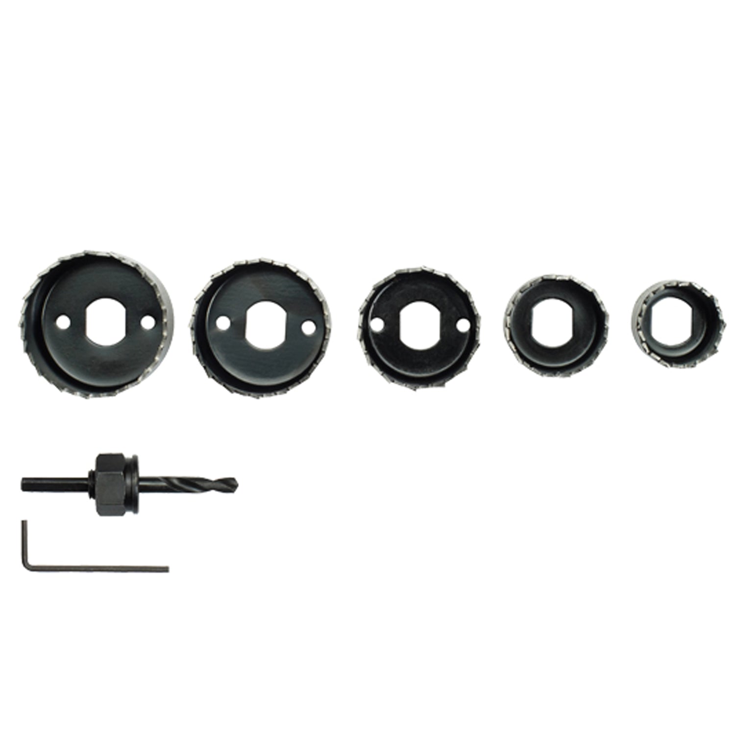 • Set complet de ferăstrău cu găuri: Include cinci ferăstraie cu găuri de dimensiuni diferite, oferind flexibilitatea de a efectua tăieturi de precizie pe diferite materiale.