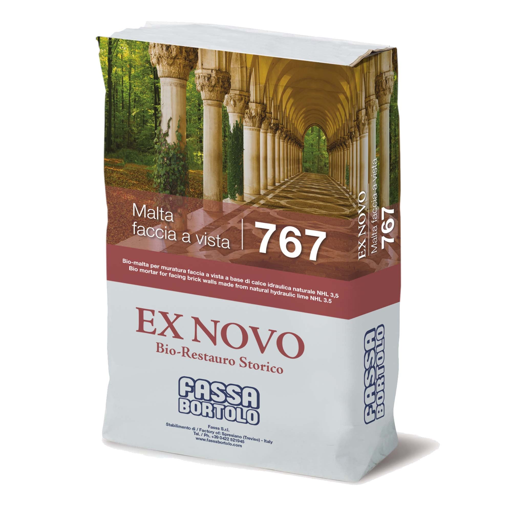 Malta față în față Fassa 767 este o Bio-mortar pentru zidărie aparentă, hidrofug, pe bază de var hidraulic natural NHL 3.5 pentru interioare și exterioare.