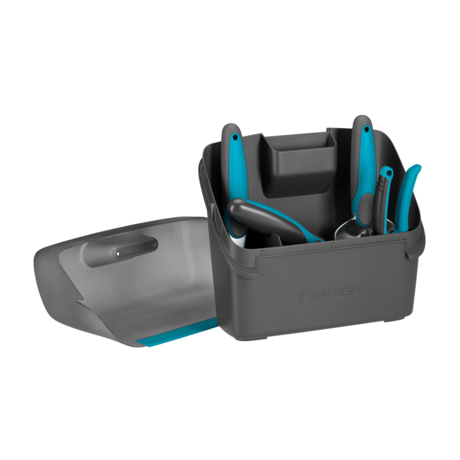 The Set de balcon Gardena Este un set ideal pentru toate lucrarile de gradinarit pe balcoane si terase. Toate uneltele se încadrează în recipientul mare de plastic, al cărui capac poate fi folosit și ca lopată.